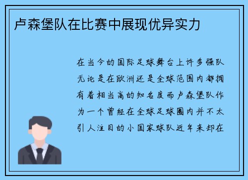 卢森堡队在比赛中展现优异实力